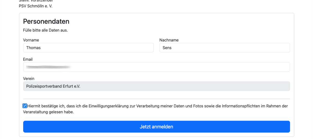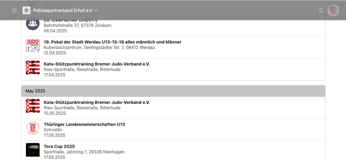 - Suche in der Liste den Wettkampf raus, für den du deine Meldung machen willst und klicke drauf.