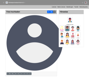 - Lade nun das Profilbild der Person hoch, für die dieser Pass gelten soll indem du auf das blaue Bild mit einer Wolke und einem Pfeil nach oben klickst. Je nach dem, ob du diesen Prozess an einem PC oder mit dem Handy machst, kannst du ein Bild mit dem Datei-Browser auswählen oder (beim Handy) direkt aufnehmen oder aus deiner Galerie/Bibliothek/Fotos auswählen.