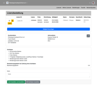 - Überprüfe die Anzahl der Mitglieder in der Bestellung mit den Angaben unter "Guthaben".