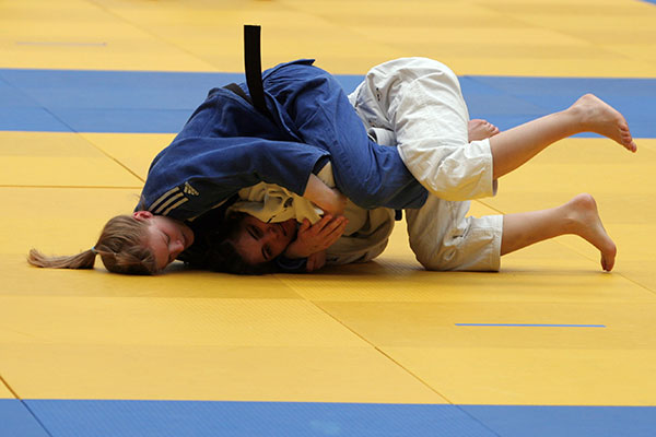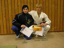 Neben obligatorischem Stadtbummel und Weihnachtsmarktbesuch standen mehrere Trainingseinheiten auf dem Plan. Landestrainer Mike Göpfert zeigte am Freitagabend Judotechniken, die angehende Sportgymnasiasten beherrschen sollten. Am Sonnabend fungierte als Trainerin die bisher erfolgreichste Kämpferin des TuS Jena und jetzige Leipziger Studentin Anja Wagner, immerhin Junioren- Europameisterin 2003 und diesjährige Dritte beim A- Weltcup der Frauen in Dänemark. Sie brachte aus Leipzig den brasilianischen Weltmeisterschaftsteilnehmer im Jiu- Jiutsu Victor Pereira mit, der Spezialist in den Bodentechniken ist. Unter den Augen von Jugendwart Thomas Sens brachte sie den Teilnehmern Technik und Anwendungsbereich des Ko-Uchi-Gari näher.