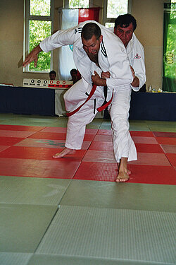 Am Samstag den 12.Mai starteten die "Senioren" über 30 Jahre bei den offenen Thüringer Landesmeisterschaften. Diese, schon zum 4. Mal in Saalfeld ausgetragenen Titelkämpfe wurden in diesem Jahr erstmals offen für Judokas aller Bundesländer ausgetragen und standen unter der Schirmherrschaft des Saalfelder Bürgermeisters Matthias Graul. Insgesamt gingen 50 Aktiven aus 8 Bundesländern an den Start und nutzten diese Titelkämpfe zur Vorbereitung auf die Deutschen Meisterschaften die Anfang Juni in Bonn stattfinden. Ein weiteres erfreuliches Novum war die erstmalige Teilnahme von Frauen an diesen Meisterschaften, die sich mindestens genauso wacker wie Ihre männlichen Kollegen schlugen und sich so manchen Szenenapplaus redlich verdienten. Vor einen fachkundigen Saalfelder Publikum setzte sich als beste Kämpferin Daniela Huber (JC Leipzig) durch, die sowohl die 70kg-Klasse als auch die open gewinnen konnte. Bei den Männern konnte dies Franz Wichmann (Ahlen) nachmachen, der das Schwergewicht und die open gewann. In der 100kg-Klasse gewann der Lokalmatador Matthias Born (JSC-Saalfeld) alle seine Kämpfe vorzeitig und somit auch diese Gewichtklasse. Ronald Tschinke (JC-Scheina) erkämpfte sich nicht zu letzt durch seine Erfahrung in der stark besetzten 90kg-Klasse den Meistertitel. Alle weiteren Sieger und Platzierten siehe Ergebnissteil.Bei sehenswerten Kämpfen auf hohem technischem Niveau wurde bis zum Schluss hart um die Pokale und Medaillen gekämpft. Für das Jahr 2008 wird bereits darüber nachgedacht noch eine Altersstaffelung vorzunehmen um unsere älteren Veteranen auch auf der Matte zu halten.