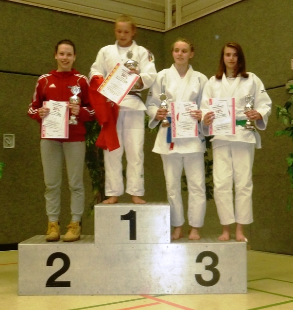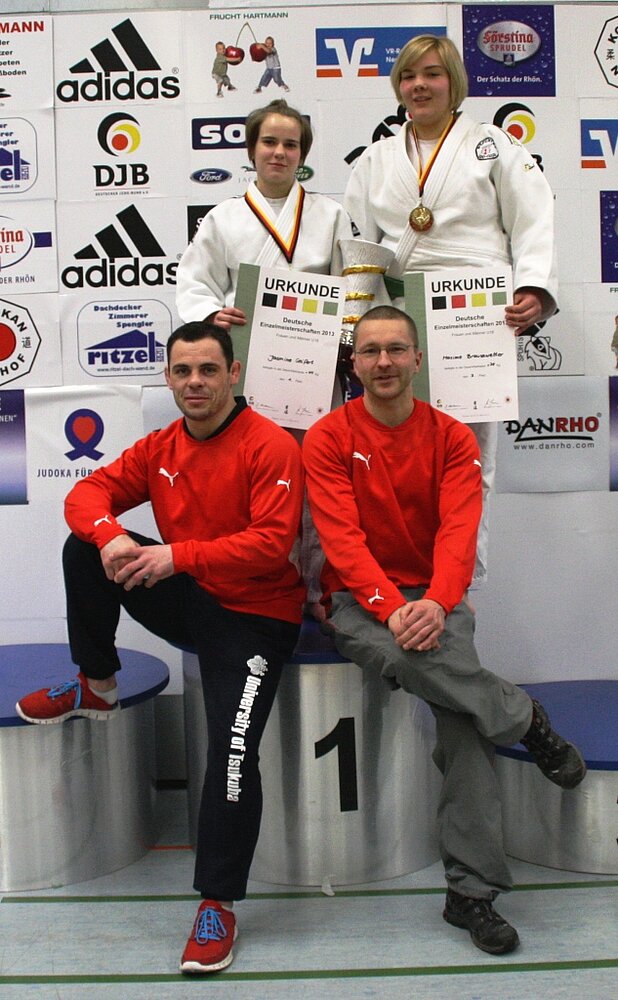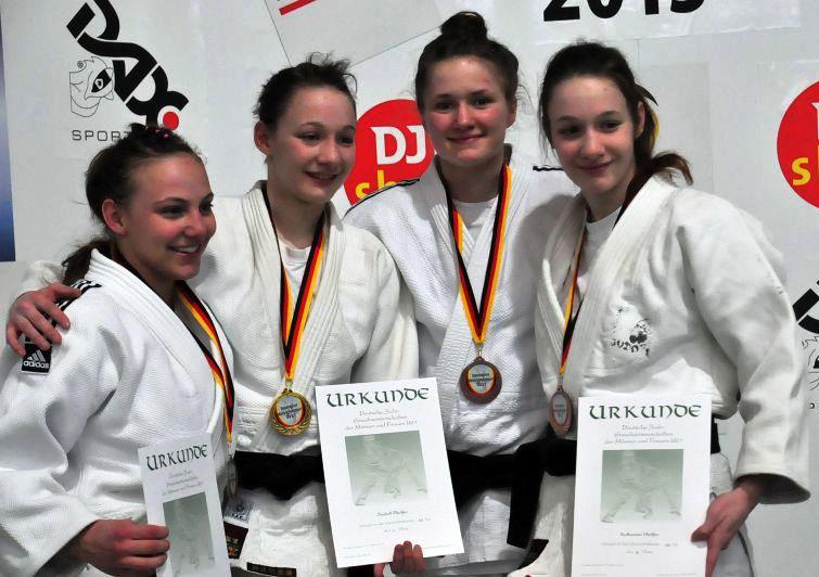 Jasmin setzte sich souverän mit 4 Siegen durch. Dabei schaltete sie im Viertelfinale die Letztjährige Meisterin aus und war auf ihrem Weg nicht zu stoppen. Nach Doppelbronze im letzten Jahr, ist der Titelgewinn das Spiegelbild ihrer positiven Leistungsentwicklung. Maxime kämpfte sich mit zwei schnellen Siegen ins Halbfinale. Nach einer Niederlage errang sie mit einem weiteren Sieg Bronze. Erwähnenswert ist auch der 7.Platz von Sabrina Fischer (-70kg, Erfurter JC), die nach einer Auftaktniederlage noch drei Siege erkämpfte.