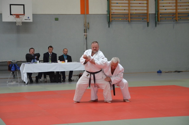 Die Prüflinge gehörten zum Teil den "älteren Semestern" an. Dementsprechend gab es auch einige Kritikpunkte, was die Exaktheit und Geschmeidigkeit der technischen Demonstrationen betrifft. Vor allem was die Grundelemente betrifft, sollten sich unsere Judoka etwas sorgfältiger mit den Wurf- und Grifftechniken beschäftigen. Dem gegenüber muss man die gelungenen Darbietungen von Janina Gürth hervorheben, die, sicher an Lebensjahren jünger, eine technisch ausgereifte Prüfung ablieferte. Außerdem hat der TJV wieder einen Prüfling, der die hohe Graduierung des 5. Dan erreichte. K.-D. Tiedecke aus Gotha zeigte als Höhepunkt seiner Darbietungen zwei gut ausgeführte klassische Katas.