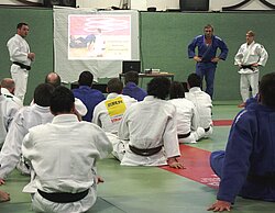 Zu Beginn stellte Landestrainer Mike Göpfert die Rahmentrainingspläne vor. Stützpunkttrainer Tony Stegmann und Honorartrainerin Jenny Nisser stellten im Anschluss die grundlegenden Elemente des Judotraining vor. Am Ende der theoretischen Einheit ging es bei Honorartrainer Andy Poltrok um den Weg von Tandoku-renshu über das Randori zum Wettkampf unter dem Gesichtspunkt des Techniktrainings.