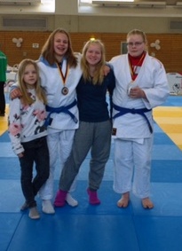 Für die Medaillen sorgten bei den Mädchen Alina Völke -70kg mit vier Siegen und Lea Stein (+70kg) vom JSC Stotternheim, mit drei Siegen. Nach ihren Niederlagen in der Hauptrunde konnten sie jeweils ihren Kampf um Platz 3 siegreich gestalten. Einen guten 5. Platz belegte Theresa Friedel von den Mattenteufel Erfurt. Nach drei Siegen in der Hauptrunde konnte sie das kleine Finale leider nicht gewinnen.