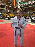 Lisa Buschmann vom Budokan Heiligenstadt sicherte sich nach ihrer Auftaktniederlage noch den 3. Platz. In der Trostrunde zeigte sie ihre kämpferischen Qualitäten und konnte sich so bis zum 3. Platz durchkämpfen.