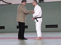 Herauszuheben ist das Ablegen des 5. Dan durch Tobias Danz (SV Schmalkalden). Er zeigte eine technisch und kreativ ausgereifte Prüfung. Insbesondere im Bereich der Kata konnte man die vielen Stunden des Trainings mit seinem Uke sehen.