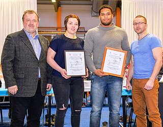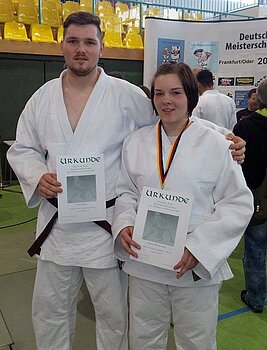 Mit Maxime Brausewetter vom Erfurter Judo-Club und Domenik Schönefeldt vom Budokan Sonneberg, nahmen die erfolgreichsten Athleten aus 2015 die Ehrungen entgegen und konnten sich über je 500,00€ Preisgeld freuen. Maxime wurde 2015 Vize-Europameisterin der u18 und krönte die Saison mit einem 5. Platz bei den Weltmeisterschaften. Genau dieses Ergebnis konnte auch Domenik einfahren. Der Preis ist die Anerkennung des Verbandes für Spitzenleistungen im Nachwuchsbereich und soll Beide auf ihrem weiteren Weg unterstützen.