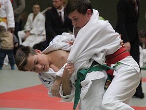 Judotechnisch krachen ließ es Theo Böhnhardt vom FSV 1950 Gotha. Erst sieben Jahre alt sorgte er gleich mit mehreren sauberen Ippon-seoi-nage Würfen für Raunen und Staunen an der Judomatte. Spannend ging es in der U15 bis 46 Kilogramm zu hier lieferten sich alle Kämpfer ein Kopf-an-Kopf-Rennen. Am Ende ging der Sieg an Kevin Bakseev vom FSV 1950 Gotha, der gegen seinen Vereinskameraden Nils Voß mit Armhebel gewinnen konnte. Für Jubel beim JSV 13 Erbstromtal sorgte der Ippon von Tim Hannes Schrön. Er überraschte im entscheidenden Kampf Jordi Bastek mit einem schnellen O-uchi-gari und sicherte sich somit die Goldmedaille in der u10 bis 30,6 Kilogramm. (TT)