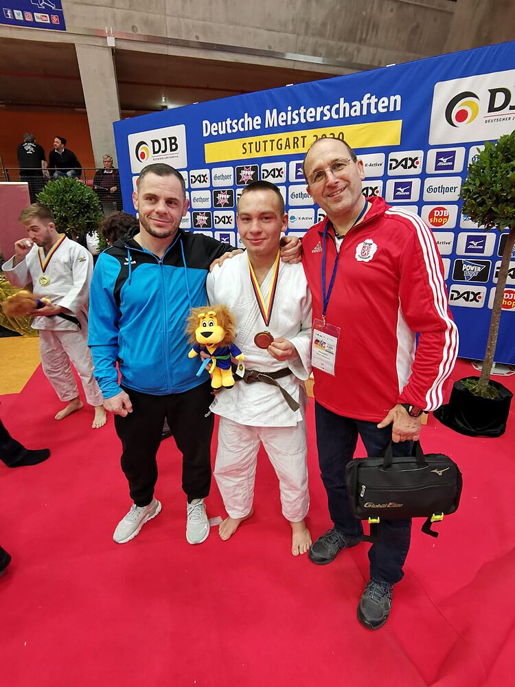 Nach einem starken Wettkampf kann Maximilian Standke (Kodokan Erfurt) die Bronzemedaille bei den Deutschen Meisterschaften der Männer erkämpfen. Mit einem Auftaktsieg gegen Philipp Geimer startet der Erfurter 60 Kilo Mann in Stuttgart in die Nationalen Titelkämpfe. Im Kampf zwei unterliegt er dem späteren zweiten Drittplatzierten Fabian Häßner nach Bestrafungen. In der Trostrunde marschiert der Erfurter Kampf für Kampf durch das starke Starterfeld der leichtesten Gewichtsklasse der Männer. Im kleinen Finale kann er, mit einem Sieg gegen Daniel Scheller, Platz Drei der Deutschen Einzelmeisterschaften erkämpfen. Als mittlerer Jahrgang der U21 setzt der Deutsche U21-Meister auch bei den Herren ein erstes und deutliches Ausrufezeichen! Sein ehemaliger Trainer Mike Göpfert und Thüringens neuer Landestrainer Jan Steiner freuten sich über den tollen Erfolg.