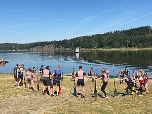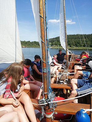 Der vierte Tag wurde noch einmal zum Wassersport genutzt. Am Vormittag gab es eine Kanutour und am Nachmittag ein Ausfahrt mit dem Segelboot, wenn auch der Wind etwas schwächelte. Etwas mehr Action gab es parallel bei den Olympischen Spielen. Statt im japanischen Tokio wurde im südthüringischen Kloster hart um die Medaillen gekämpft. Der TJV Schulsportreferent Sebastian Stephan führte durchs Olympische Programm. Das dabei Doping keine Option ist erfuhren die Teilnehmer auch. In der anschließenden Diskussion war man sich einig, dass Sport immer fair und gerecht sein sollte.
