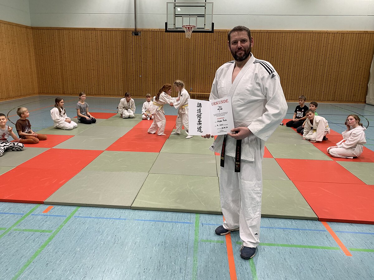 Matthias Herlitze seit 2019 B-Trainer und auch als Kampfrichter regelmäßig im Einsatz, ist seit November Abteilungsleiter der Judoabteilung des SV Schwarza. Seit vielen Jahren trainiert er die Gruppen im Verein, ist in der Jugend des TJV aktiv und unterstützt den Förderverein "Judo-Team Thüringen" mit seinem ehrenamtlichen Wirken. Als wichtige Stütze bei der Organisation des Heidecksburgpokals, sowie vieler Landesmeisterschaften hat er sich die Auszeichnung mit dem 2. Dan redlich verdient. Wir gratulieren!