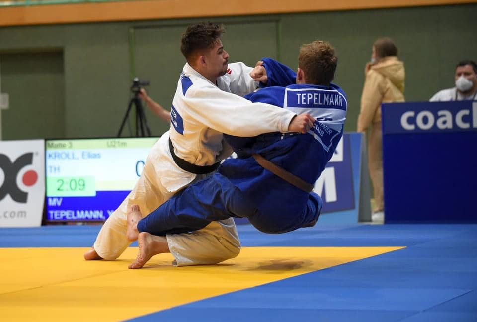 In der mit 8 Teilnehmern besetzten Gewichtsklasse bis 90 Kilogramm gewann Elias Kroll vom Erfurter Judoclub bei den Männern u20 mit drei souveränen Siegen die zweite Goldmedaille für den Thüringer Judoverband. Mit variablen Wurftechniken und Kombinationen im Stand bestätigte er seine positive Leistungsentwicklung seit der Deutschen Meisterschaft der Junioren, bei der er sich vor vier Wochen die Bronzemedaille erkämpfen konnte.