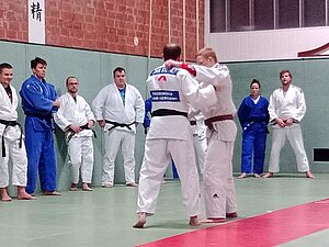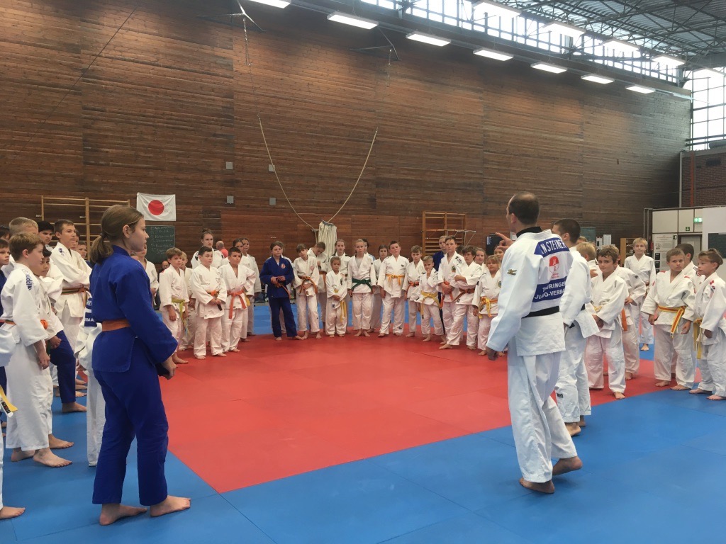 Landestrainer Jan Steiner und Stützpunkttrainer Vincent Giller leiteten die Einheiten. Am Vormittag standen Turnen, verschiedene Eingänge im Tandoku renshu, Morote-seoi-nage, O-soto-gari und 8 Randori im Stand auf dem Plan. Nach der Mittagspause und einer Kriechgymnastikerwärmung, zeigten die beiden LLS-Trainer zwei Umdreher im Boden. Zum Abschluss durfte noch einmal gekämpft werden. Acht Randori im Boden und verschiedene Judospiele bildeten den Abschluss eines tollen Judotages, der demnächst seine Fortsetzung findet.