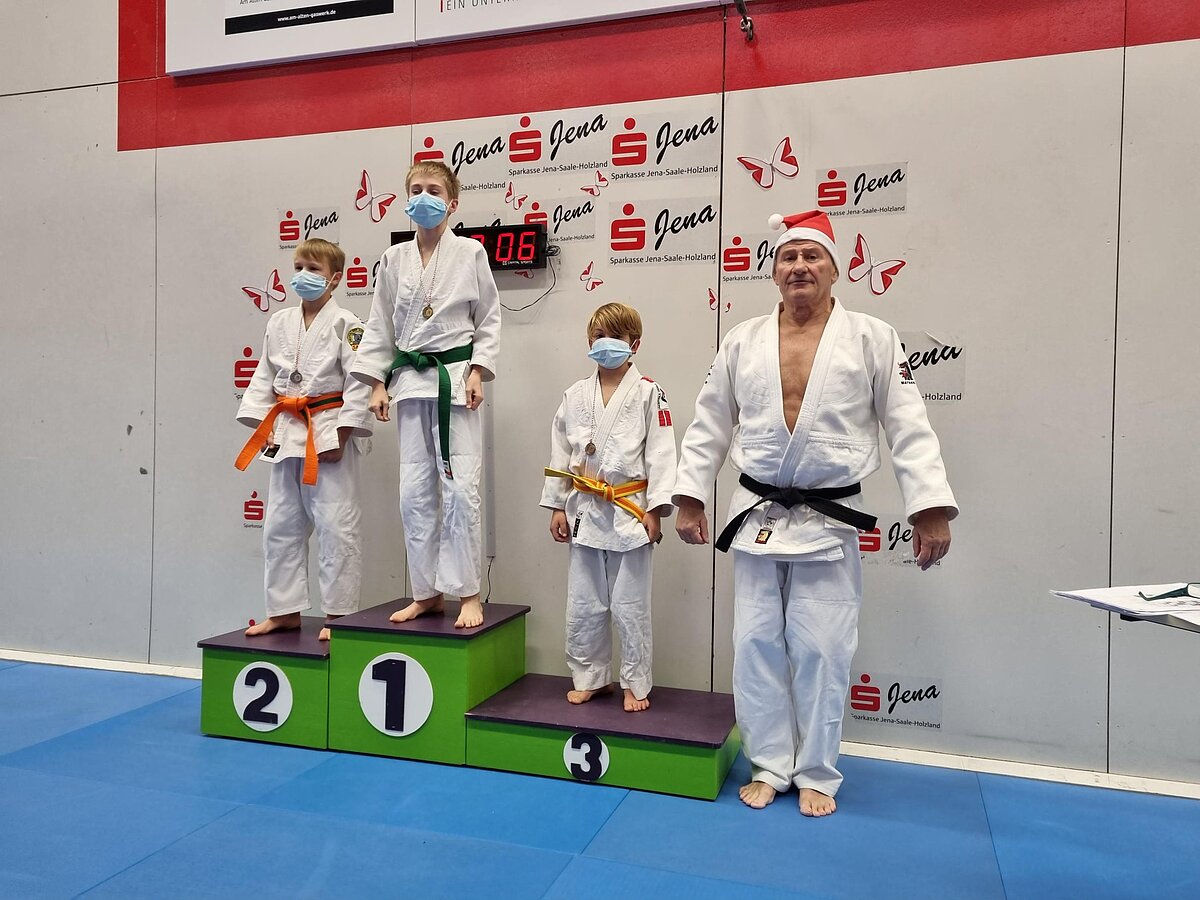 Am letzten Wochenende vor Weihnachten lud der JC Jena zum „Gemeinsamen Trainieren und Kämpfen“ der U11 und U13 ein. Trotz der gegenwärtigen Situation nutzten vier Thüringer Vereinen dieses Judo-Event. Die Corona-Regeln (Sportler- Testnachweis der Schule, Trainer 3 G, Eltern-2 G) wurden strikt eingehalten. Insgesamt nahmen 33 Sportler vom PSV Erfurt (4) , JSV Auma (8), TSG Gera-Zwötzen (2), Nippon Schleiz (5) und vom gastgebenden JC Jena (11) teil. Der Trainingsinhalt hatte sich bewährt. Es begann mit einer gemeinsamen Erwärmung mit kleinen Spielen, Bodenturnen und Tandoku-renshu. Beim Technikteil wurden Standtechniken wiederholt und gefestigt. Am Boden wurden zwei Festhalten angeboten. Carl Then „Deutscher Meister 2021“ der U18 und zwei weitere Sportschüler Henry Röder und Marie Jochum vom JC Jena unterstützten das Techniktraining und gaben Tipps und Ratschläge weiter. Der erste Teil der Veranstaltung wurden mit vier Randori-Runden abgeschlossen.