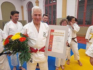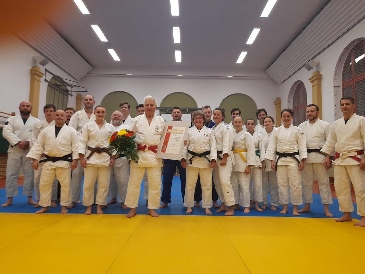 Tino Berg (USV Jena) wurde für sein Wirken als Lehrwart und Präsident im vergangenen Jahr der 6. Dan zuerkannt. Nunmehr erfolgte die offizielle Übergabe durch Amtsnachfolger Thomas Sens.