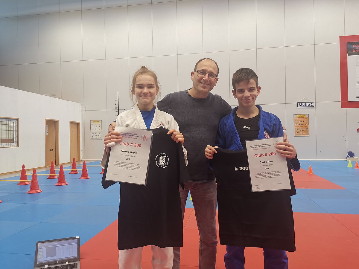 Dafür erhielten sie vom Thüringer Judoverband eine Urkunde sowie ein speziell angefertigtes T-Shirt und wurden auf diese Weise symbolisch in den „Club # 200“ aufgenommen.