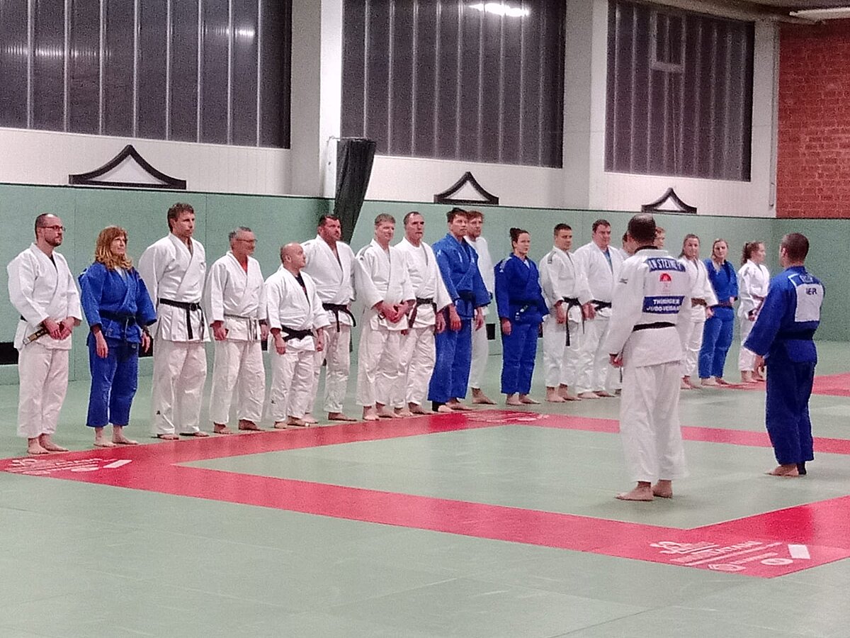 Unter der Leitung von Landestrainer Jan Steiner sowie den Vereinstrainern Gerhard und Andre´ Hoffmann vom Kodokan Erfurt und Luis Kroll vom Erfurter Judoclub wurden technisch-taktische Inhalte des neuen TJV-Rahmentrainingsplans vermittelt und vor allem viele schweißtreibende Runden Randori in Vorbereitung der anstehenden Meisterschaften absolviert.