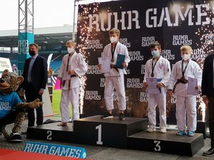 Merlin Vogt vom Erfurter JC kämpfte am 3. Tag der Ruhr Games in der mit 25 Teilnehmern sehr stark besetzen Gewichtsklasse bis 66 Kilogramm. Gegen Wilhelm Fannenstiel vom SC Budokwai Garbsen musste der 15-jährige Sportschüler in seinem Erstrundenduell trotz einiger hoffnungsvoller Ansätze eine vorzeitige Niederlage hinnehmen. Weil sein Kontrahent im Kampf um den Poolsieg verlor, schied Merlin Vogt leider ohne Trostrundenchance vorzeitig aus dem Turnier aus. Dennoch konnte der junge TJV-Kämpfer wertvolle Erfahrungen für die Zukunft sammeln.