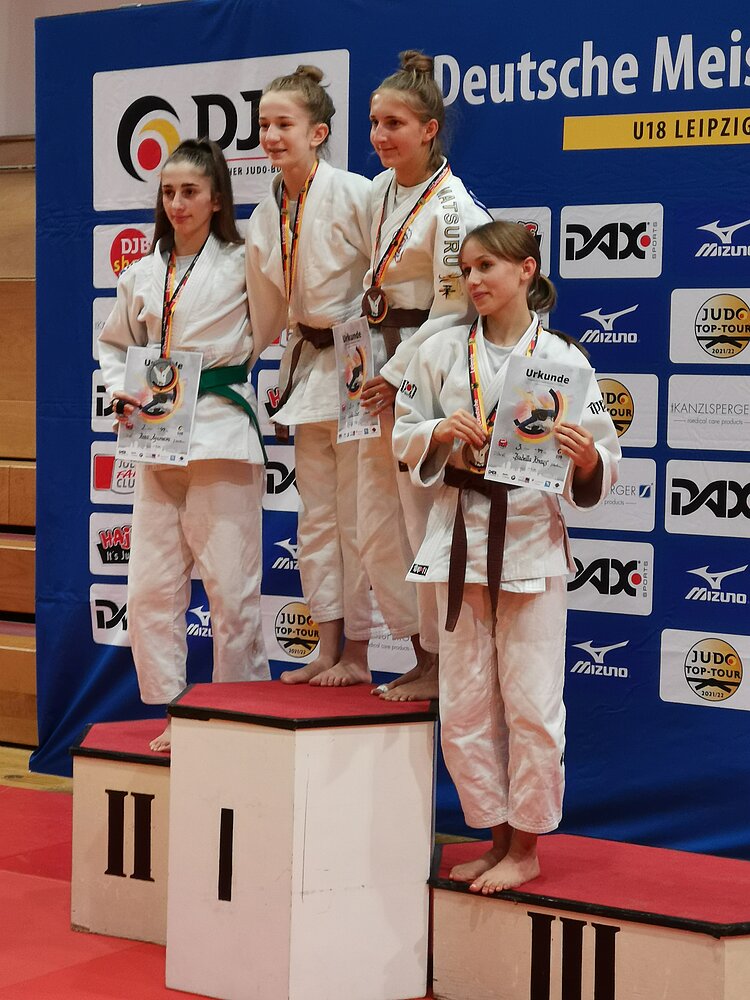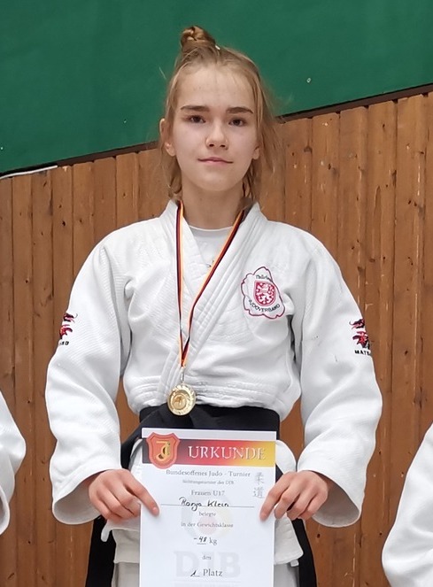 Allen voran startete Ronja Klein von den Mattenteufeln Erfurt, die im vergangenen Jahr bereits an gleicher Stelle ihren ersten großen Turniererfolg auf Bundesebene in der Leichtgewichtsklasse bis 48 Kilogramm feiern konnte. Sie ging diesmal als klare Favoritin auf die Tatami und wurde ihrer Favoritenrolle auch mehr als gerecht. In keiner ihrer vier Vorrundenbegegnungen musste die 16-jährige Sportschülerin über die volle Kampfzeit von 4 Minuten gehen und gewann ihre Duelle allesamt kurzrundig, mit der höchstmöglichen Wertung im Judo – einem Ippon (voller Punktgewinn, bedeutet den vorzeitigen Sieg). Für ihre vier Vorrundenkämpfe benötigte sie insgesamt weniger als acht Minuten, das entspricht in etwa der durchschnittlichen Kampfzeit von nur zwei Einzelkämpfen. Legendlich Ronjas Finalgegnerin konnte sich am Ende länger behaupten, musste sich letztlich aber im Golden Score der Bodenkampfstärke von Ronja Klein beugen.