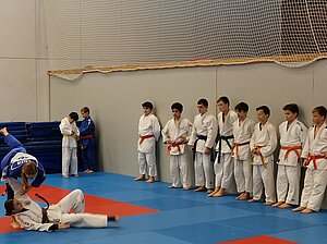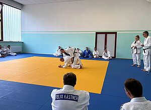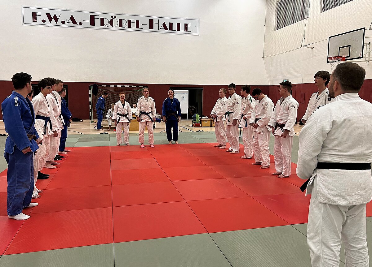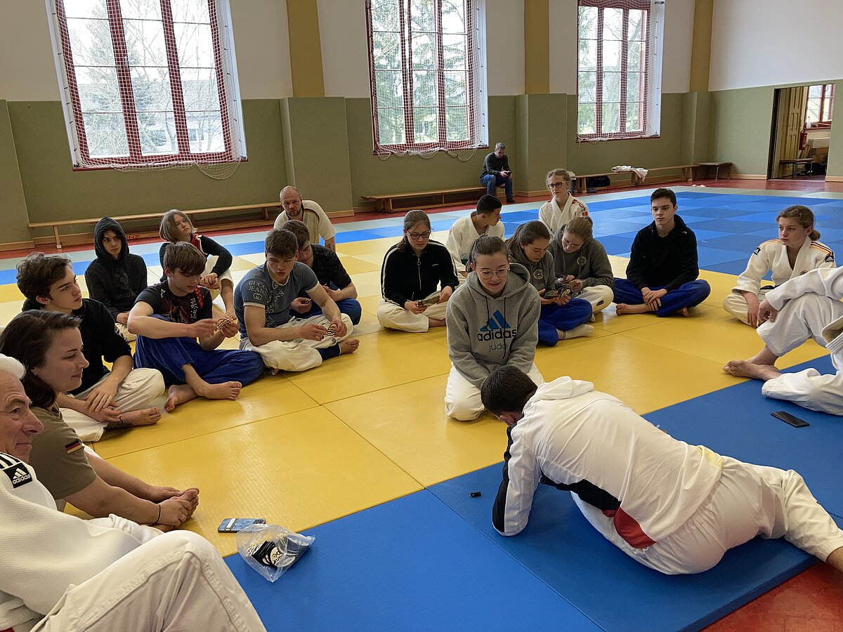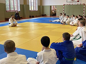 Das zweistündige Judotraining wurde unter anderem von unseren Nationalkaderathleten Ronja Klein und Carl Then gestaltet, die dem Judonachwuchs ihre Spezialtechniken, Morote Seoi Nage und Uchi Mata, vermittelten. Die beiden Vorzeigeathleten des Verbands sind ebenfalls Sportschüler am Sportgymnasium in Jena und konnten den Teilnehmern alle Fragen zum Training, zur Sportschule und dem Internatsleben aus eigener Erfahrung beantworten.