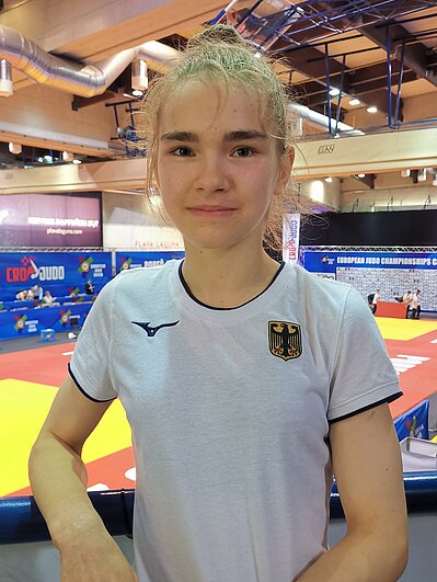 In der zweiten Runde stand sie dann nach über zwei Stunden Wartezeit endlich der Französin Tifenn Aymard gegenüber. Das lange Warten auf ihren ersten Kampf konnte die junge Sportschülerin scheinbar nicht so gut verkraften, ließ sich gleich zu Kampfbeginn von ihrer Kontrahentin überraschen und verlor. So musste sie sich schnell wieder neu fokussieren und dann den langen Weg durch die Trostrunde antreten, um sich doch noch auf einen der begehrten Podestplätze vorkämpfen zu können. Hier setzte sich die Erfurter Leichtgewichtlerin zuerst gegen Laura Barisic aus Kroatien mit einem Festhaltegriff souverän, noch deutlich vor Ablauf der regulären Kampfzeit von vier Minuten durch.