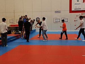 Beim selbstorganisierten Wettkampf unter den Kampfrichtern konnte das theoretische Wissen dann in der Praxis erprobt werden. In Einzelbegegnungen und Mannschaftswettkämpfen wurde gemeinsam über schwierige Entscheidungen und die Auslegungen der Wettkampfregeln diskutiert. Neben der Arbeit auf der Judomatte konnten die angehenden Kampfrichter auch die Aufgaben von Listenführern übernehmen oder den Wettkampf an der Anzeigetafel mitverfolgen. Durch die Videoaufzeichnungen des kleinen Turniers konnte man sich später selbst ein Bild davon machen, wie man als Kampfrichter auf der Judomatte wirkt und ob die eigenen Entscheidungen passend waren.